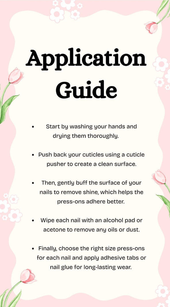 All press-on nails are customizable and made to order. Please allow 3-4 business days for processing. Orders will be shipped within the promised timeframe, and a tracking number will be provided upon dispatch.